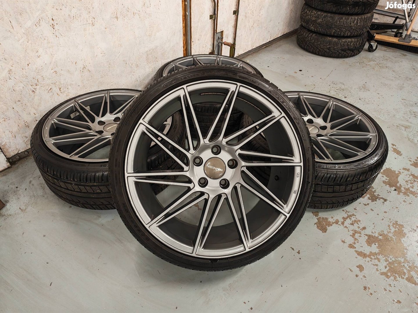 Eladó a képeken látható szép állapotú Veeman VFS26 típusú, forgásirányos (2 jobbos, 2 balos) alufelni szett, 1500km-t futott Austone 225/35 r19 méretű nyárigumikkal! DOT0221