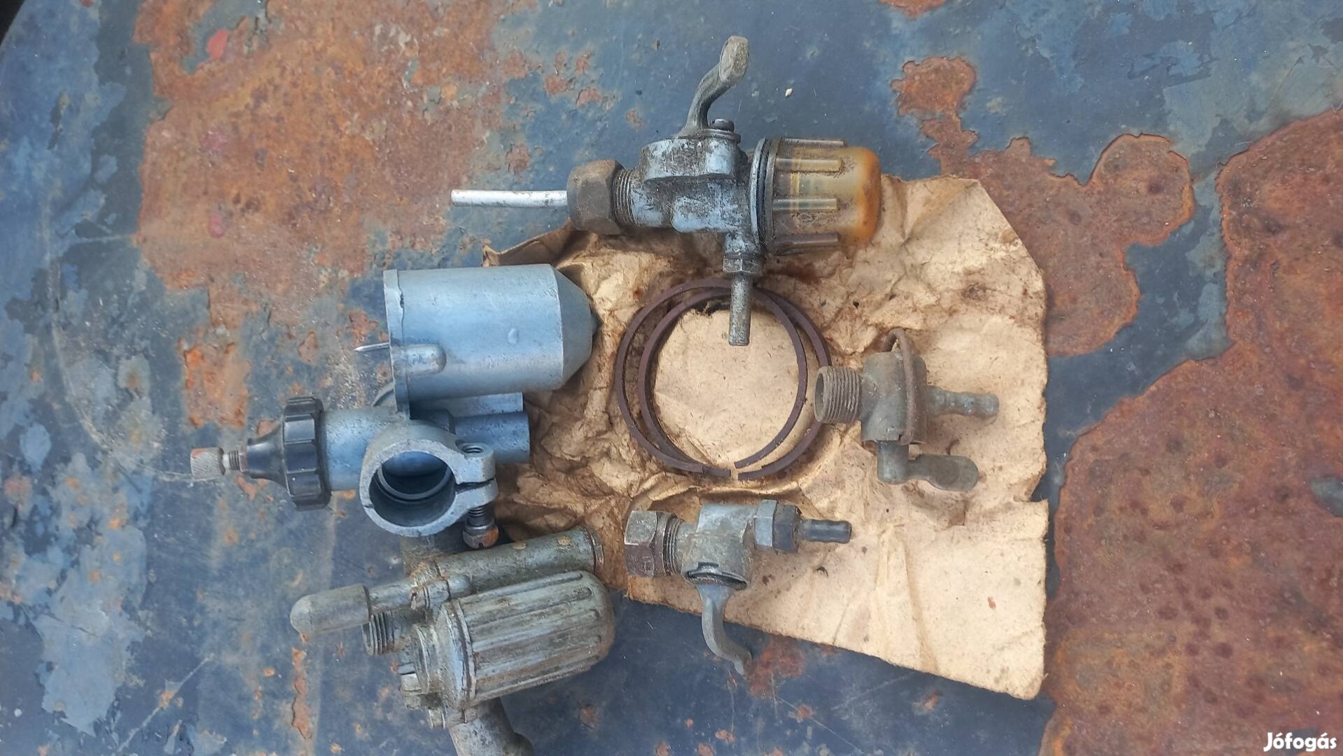 Eladó a képeken látható,csepel,danuvia motorkerékpár gyári karburátor,benzin csap,gyűrűk.