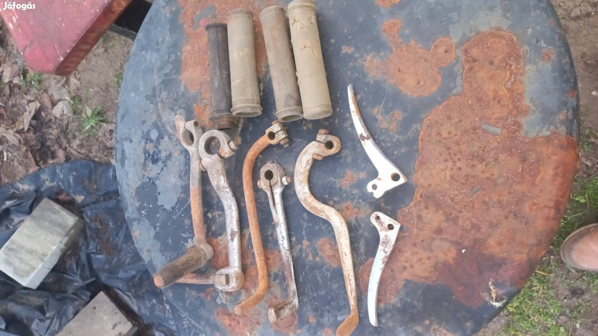 Elabó a képeken látható,csepel danuvia motorkerékpár gyári kormány markolatok,berugó és váltó valamit fék és kuplung karon.