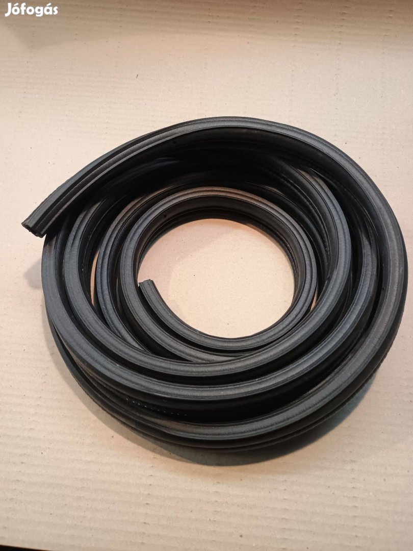 Kédergumi, új, acél merevítésű, oldalsó tömítésű 5 méteres tekercsben eladó. Mérete kb 18x28 mm, és kb 4 mm vastagságú lemezig használható.