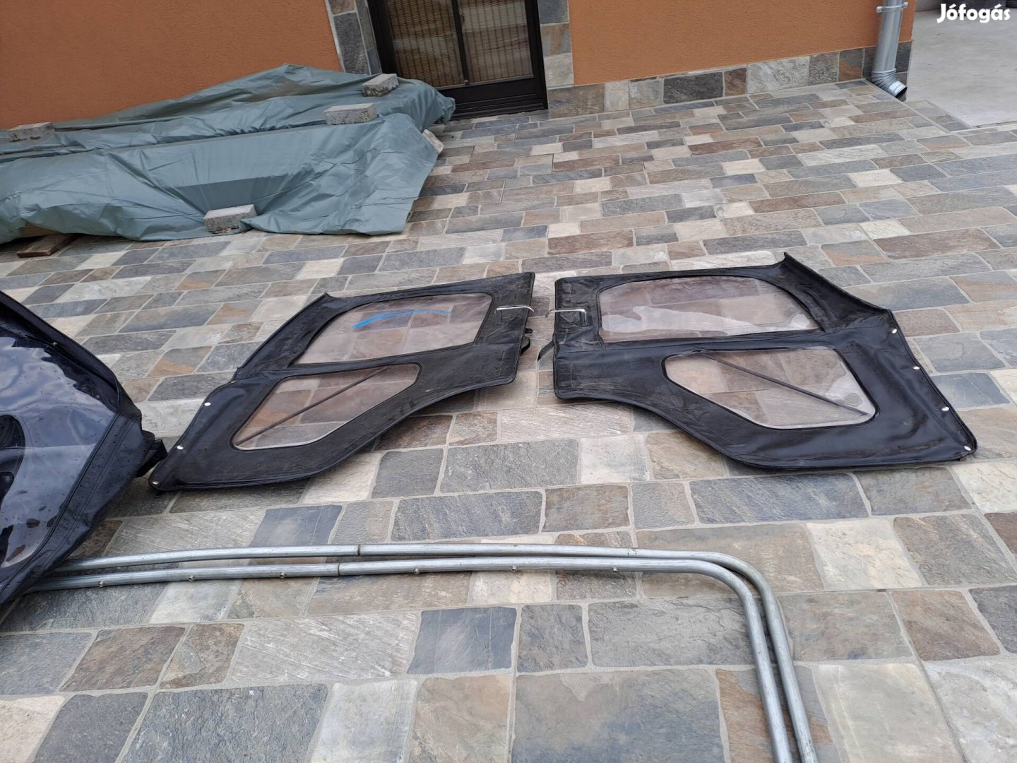 jeep cj ponyvatető ajtókkal ajtók félbecsukhatók,leszedhetők ,tető oldal leszerelhető 2db merevítő azt nem tudom cj közül melyikre jó .bestop tél.