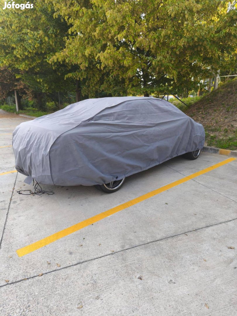Kegel autóponyva, L-es méret (420-470 cm-ig) sedan autókra, több rétegű, kiválóan véd a természet károsító hatásaitól. UV álló, lélegző. Nem tudja lecibálni a szél, mivel alul zsinórral köthető. Egyszerű felrakás. Kb. két-három alkalommal használtam a munkahelyem udvarán.