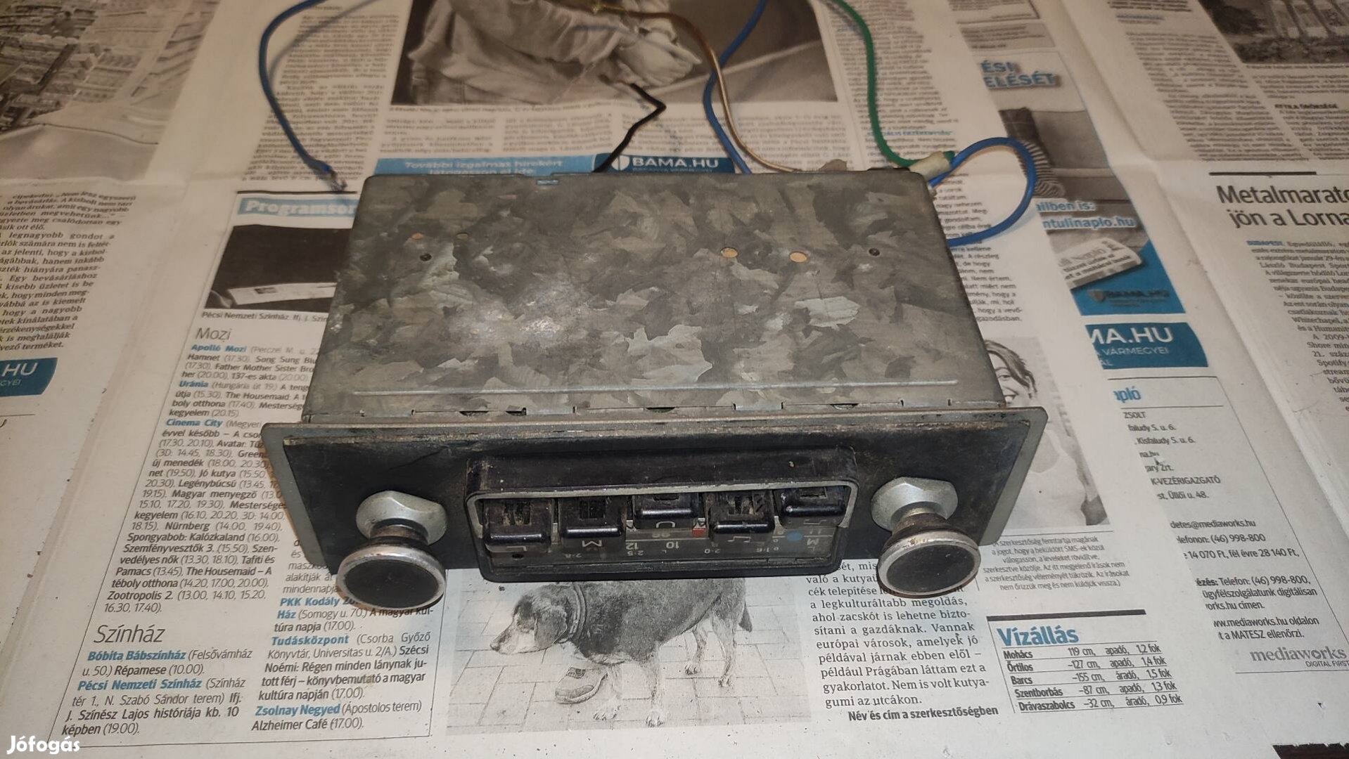 Eladó a képeken látható régi Blaupunkt autórádió. Működik,egy adót sikerült venni vele,igaz csak egy 10cm-es drótot használtam antenna helyett. 12 voltos,egy hangszórót lehet rákötni,meg van rajta valami csatlakozó. Helyileg Pécs.