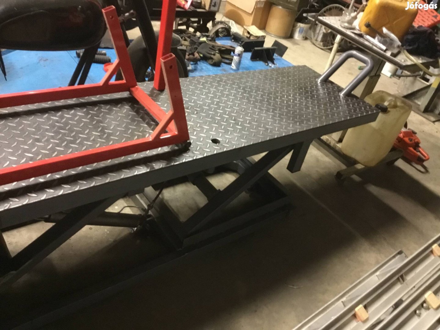 több, mint egy hónapjaHidraulikusan emelő motor szerelő pad kipufogó gáz elszívó rendszerrel eladó. Hossza 203 cm, szélessége 55 cm, maximum emelési magasság 90 cm. Csúszást gátló, és rezonanciát elnyelő gumitalpakra van szerelve, masszív vas váz szerkezetű, vastag vas trepnivel borítva. Teherbírása nagy, bármekkora nagymotort felemel. A piros színű akasztófára emlékeztető tartó szükség szerint bármelyik oldalra tehető, forgatható, remek segítség ha mind a két kerék egyszerre ki van szedve. Pl restaurálásnál váz kezdeti összerakásakor.