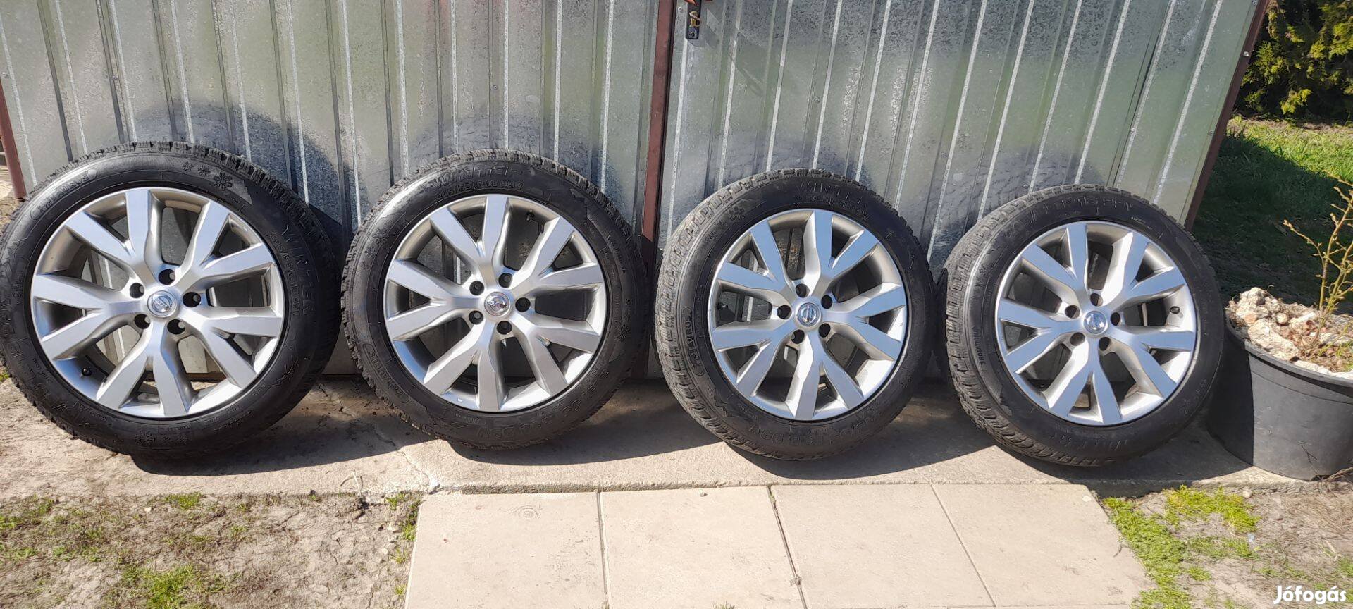Nissan Qashqai gyári állapotú patkázásmentes 18"-os alufelni garnitúra téligumival, a működő Tpms szenzorok is benne vannak 215/55-R18" 99V 90% Taurus téligumival szerelve szép állapotban, gyári fényezéssel. 5x114,3 18". 280.000 ft Tel.30/257-0234