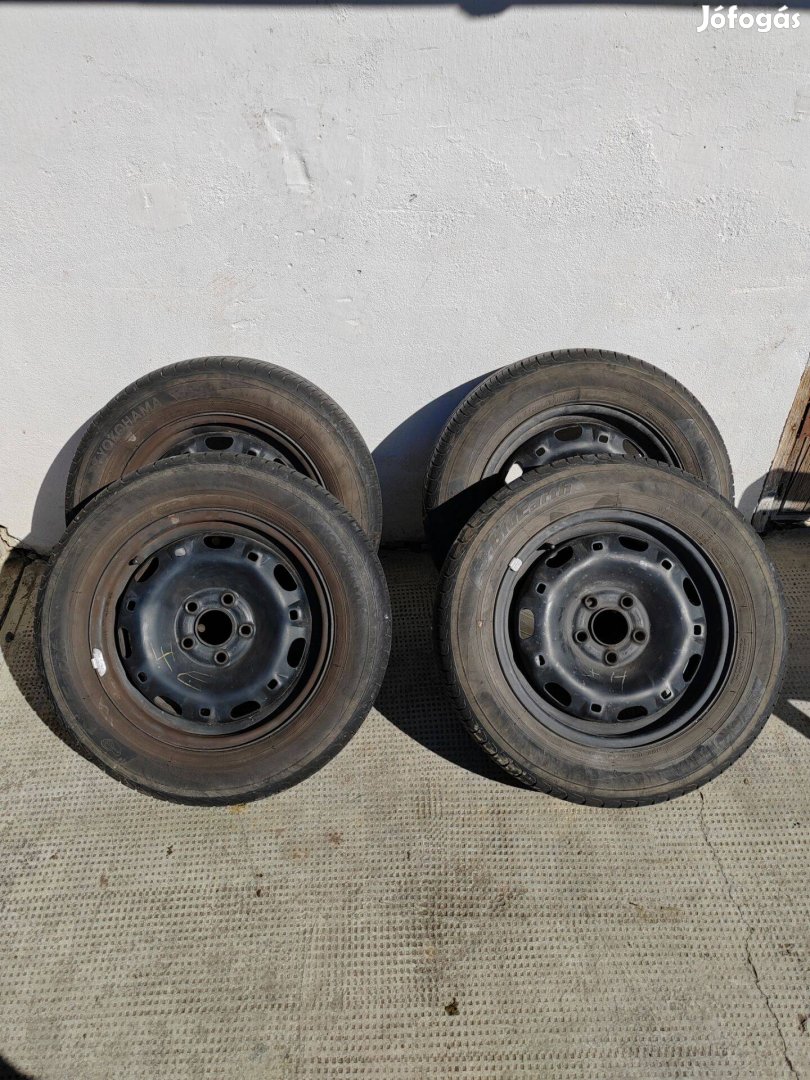 Skoda Fabia / VW Polo / Seat Ibiza 5×100 lemezfelni szett nyári gumival. Yokohama gumikkal, jó állapot, azonnal használható. 4 db egyben.