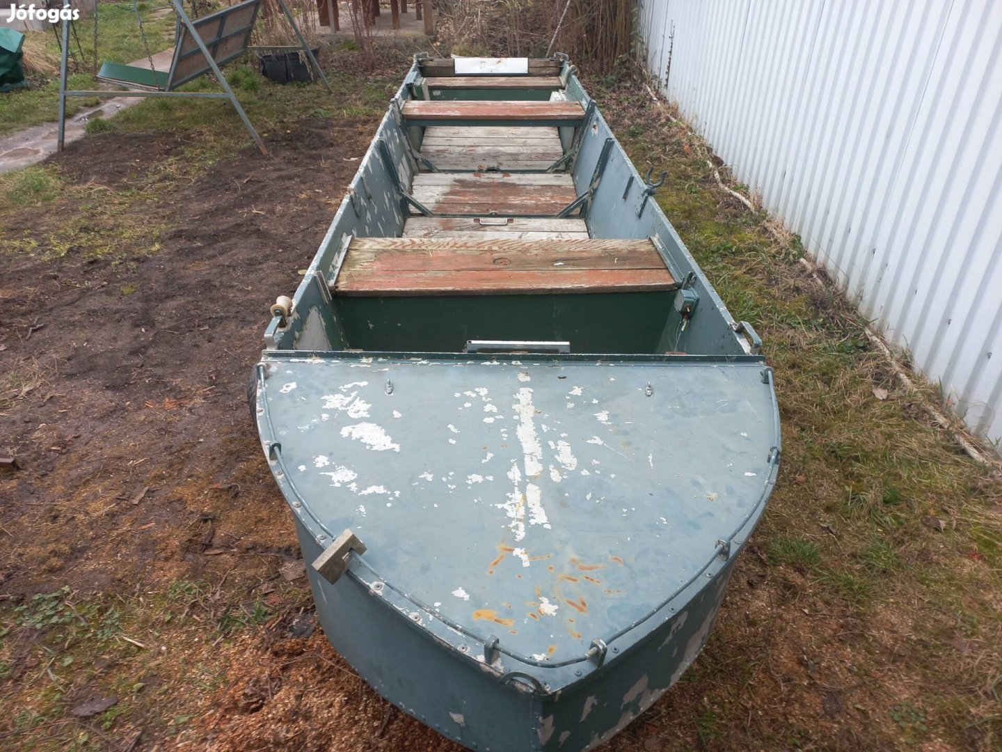 Alu csónak, 4,8x1,13x0,5m, gyári, szegecselt