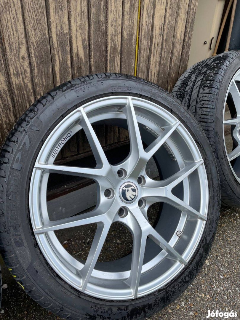 Eladó a képeken látható 19-es alufelni szett (2018-as Skoda Superb-en volt használva). 4 db felgumizva 1 db tartalék dobozban eredeti csomagolásban.