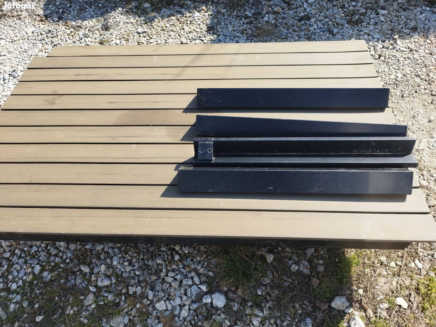 Tetején műanyag wpc, egy szálból a végéről letört egy darab.