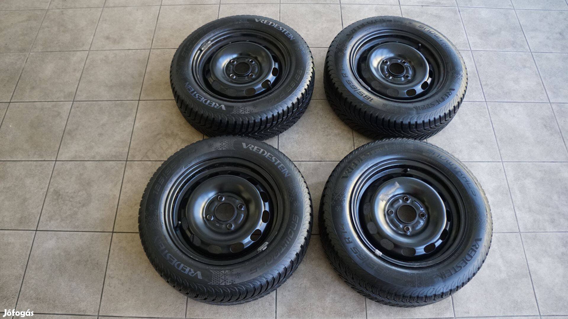 185/65 R14 Ford Fiesta autóhoz való, jó állapoban lévő, Vredestein téli gumik lemez felnire szerelve.