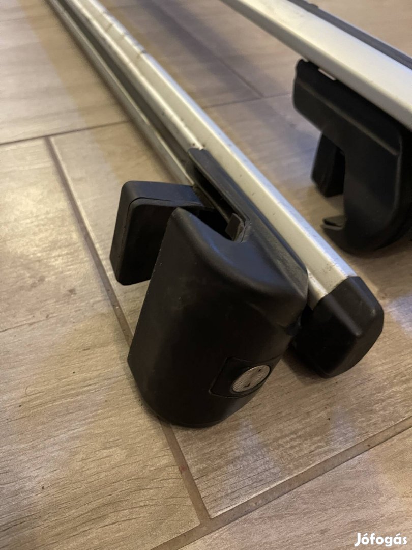 Eladó jó állapotban lévő alumínium tetőcsomagtartó 120 cm-es zárható rúddal.