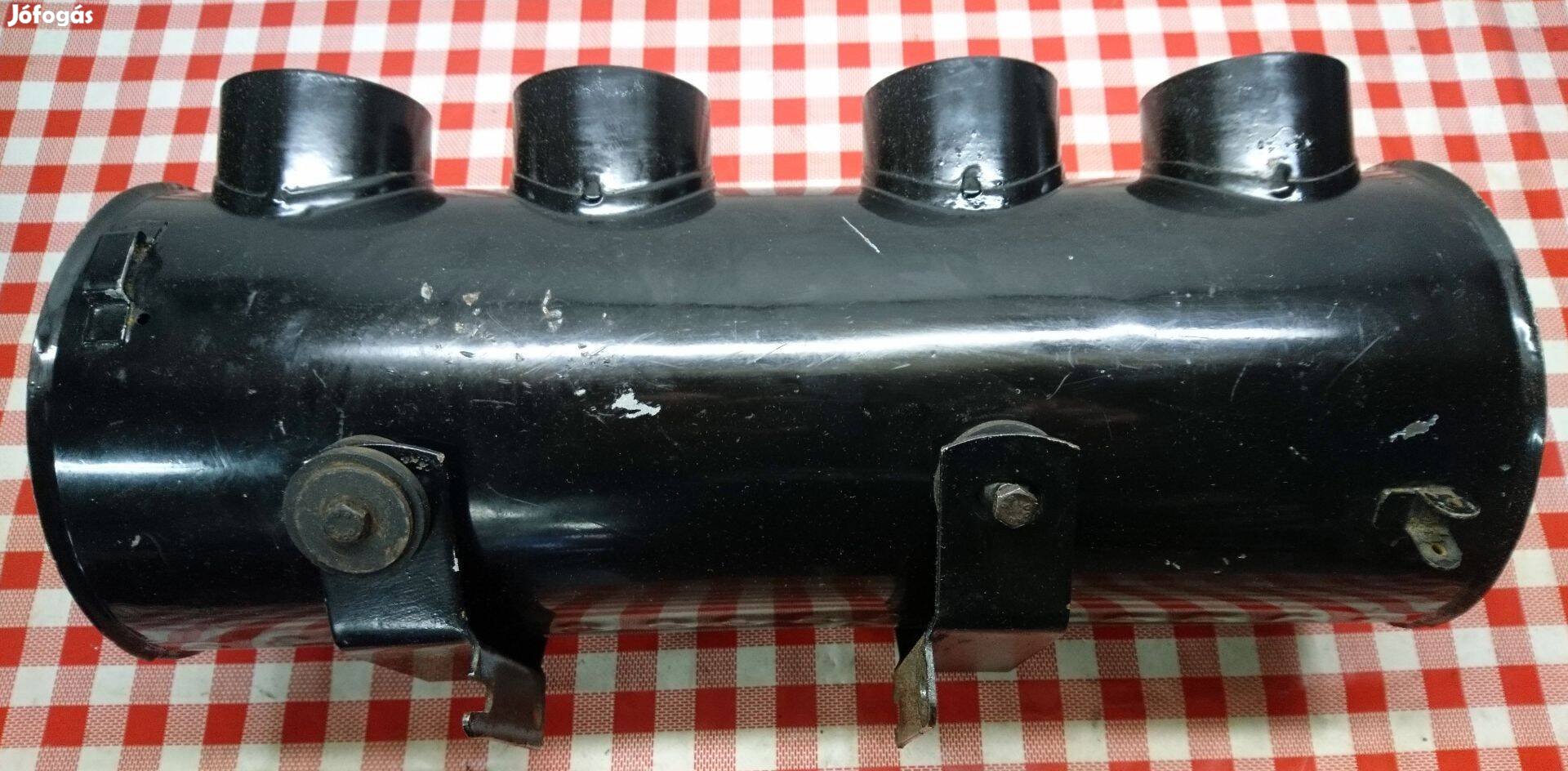 A két végén valaki már megvagdosta az áthidaló kis lemezt, de ez nem látszik, ha rajta vannak a légszűrők. Ettől eltekintve jó állapotúnak mondanám. A tartólemezek is megvannak hozzá, ahogy a fotókon látszik.