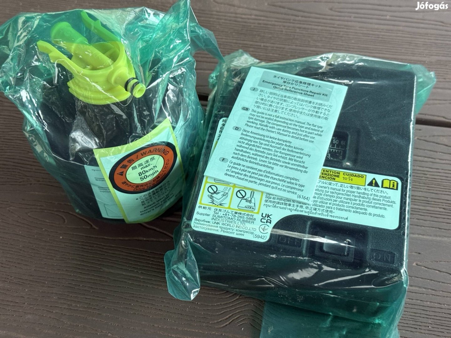 Eladó bontatlan defekt javító spray a hozzá tartozó kompresszorral. A kompresszor az autó 12V-os szivargyújtó csatlakozójáról működtethető. A spray lejárati ideje 2030. szeptember, űrtartalma 400 ml. Átvehető személyesen Budapesten. Foxpost lehet a vevő terhére a vételár és a szállítási költség előre utalás után.