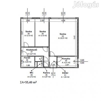 Főbb jellemzők:52 m hasznos alapterület + 5 m loggia +8 m tároló1 nappali, 1 hálószoba, +1 félszoba (ideális gyerekszobának, dolgozónak vagy vendégszobának), Külön konyha, kádas fürdőszoba