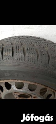 Eladó 4 darab 15 colos acél (lemez) felni, rajta 185/65 R15 méretű gumiabroncsokkal.A felnik jó állapotúak, nem ütnek, nem hegesztettek.A gumik még használhatók, repedésmentesek.