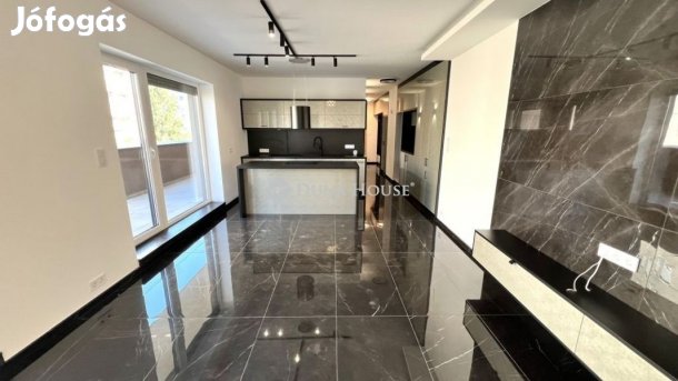 105 nm-es, világos, 1. emeleti lakás két fürdővel és hatalmas konyha-étkezővel családnak vagy otthoni munkához ideális.