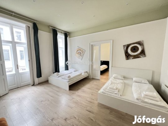 szept 30., 10:41Eladásra kínálunk egy összesen 81 nm-es, kettébontott, két külön bejárattal rendelkező, második emeleti ingatlant egy rendkívül igényesen karbantartott, elegáns társasházban. A lakás két önálló egységből áll: egy 50 nm-es, valamint egy 31 nm-es felújított lakásrészből, így ideális lehet akár két generáció számára, bérbeadásra. Mindkét lakásrész külön-külön is teljesen funkcionális, saját konyhával, fürdőszobával és bejárattal rendelkezik. A felújítás során modern burkolatok, minőségi nyílászárók és korszerű gépészet került beépítésre, így az ingatlan azonnal költözhető, illetve bérbe adható állapotban van. A ház rendezett, kulturált lakóközösséggel és gyönyörű, reprezentatív belső terekkel büszkélkedhet, ami tovább emeli az ingatlan értékét. Ez az ingatlan kiváló választás lehet befektetők számára, akik hosszú távon is értékálló ingatlant keresnek, de ugyanígy tökéletes lehet családoknak, akik egy épületen belül, de mégis külön életterekben szeretnének élni. Az ingatlan Budapest szívében, a VI. kerületben, a Hajós utca és a Dessewffy utca sarkánál helyezkedik el, néhány lépésre az Operától és az Andrássy úttól. A környék kiváló közlekedési adottságokkal rendelkezik, a közelben több metró-, villamos- és buszjárat is elérhető. A kulturális élet központjában járunk, színházak, éttermek, kávézók és üzletek sokasága található a közelben, mégis csendes, nyugodt lakókörnyezetet biztosít az itt élőknek. Az adatok tájékoztató jellegűek!