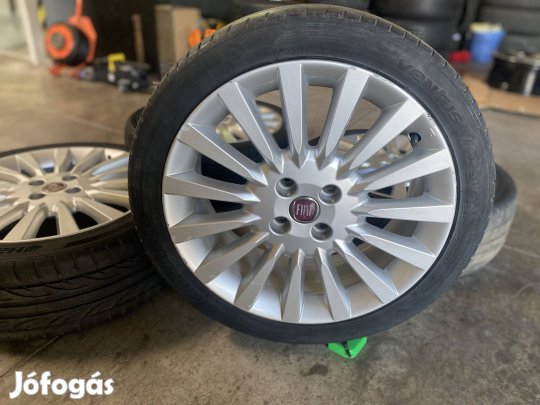 Eladó a képen látható Fiat Lancia gyári emelő szett ( emelő , kerékkulcs , vonószem ) , pótkeréktartóban.