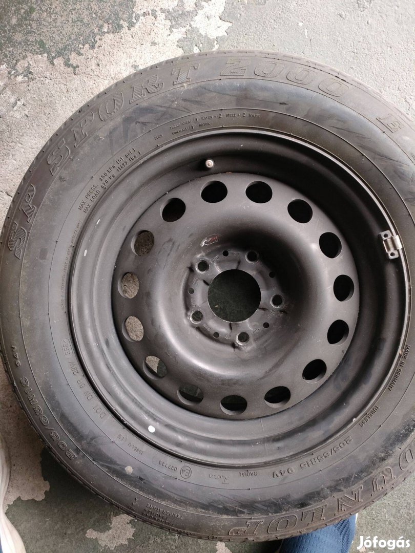 Eladó egy (BMW) pótkeréknek használt, új lemezfelnis, használt Dunlop gumival szerelve. A gumi már nem sokáug használható.