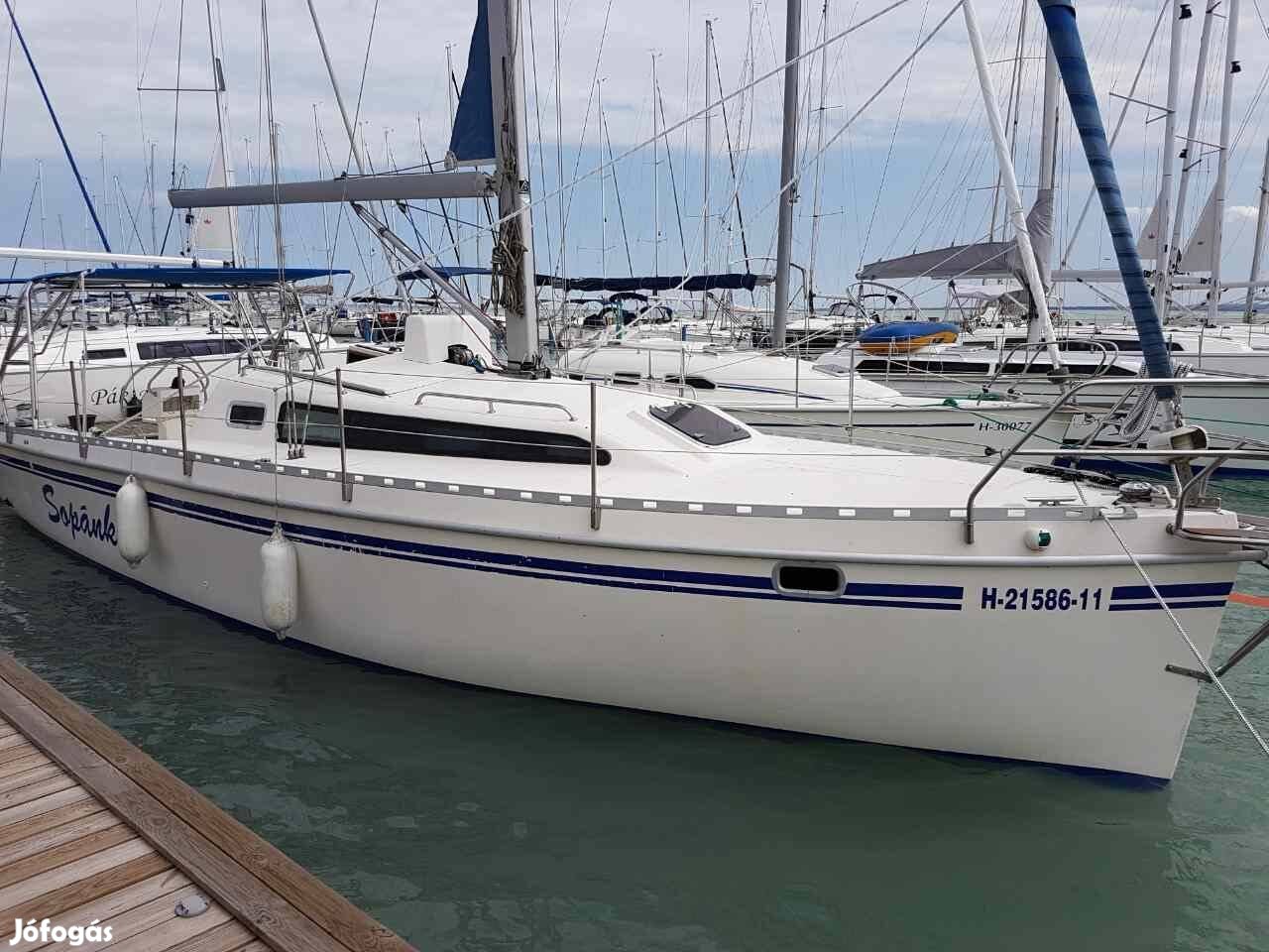 jan 27., 14:58Eladó a balatonon , a festői balatonfüred központjában egy 37-es típusú vitorlás, 11,1 m hosszú és 3,2 m széles. Maximum merülés 1,8m 12 főre vizsgáztatva tengerre is alkalmas. Tökéletes nyaraló vagy sportolási lehetőség a víz szerelmeseinek! A hajót kifejezetten a balatoni igényekre építették 2009-ben. A fedélzet 12 fő befogadására alkalmas. A hajón 3 kabin, WC és zuhanyzó, hideg-meleg vízzel felszerelt konyha, főzési és mosogatási lehetőség található. 2 db hűtőszekrény (konyha és a fedélzeten.) . Az orr (fux kanin ) kabin felett nagy napozó ágy van , a fedélzeten ( bimini) középen egy asztal hűtővel amit akár 12 fő kényelmesen körbe tud ülni. Rádió, légkondicionált fűtési lehetőséggel rendelkező légkondicionáló. Úszást segítő hátsó platform , zuhanyzóval. Új árbóc, vitorlák és új biminitető! Műszaki érvényes 2028 Ig . Kérdés esetén hívja a +421 903 713390-es telefonszámot.