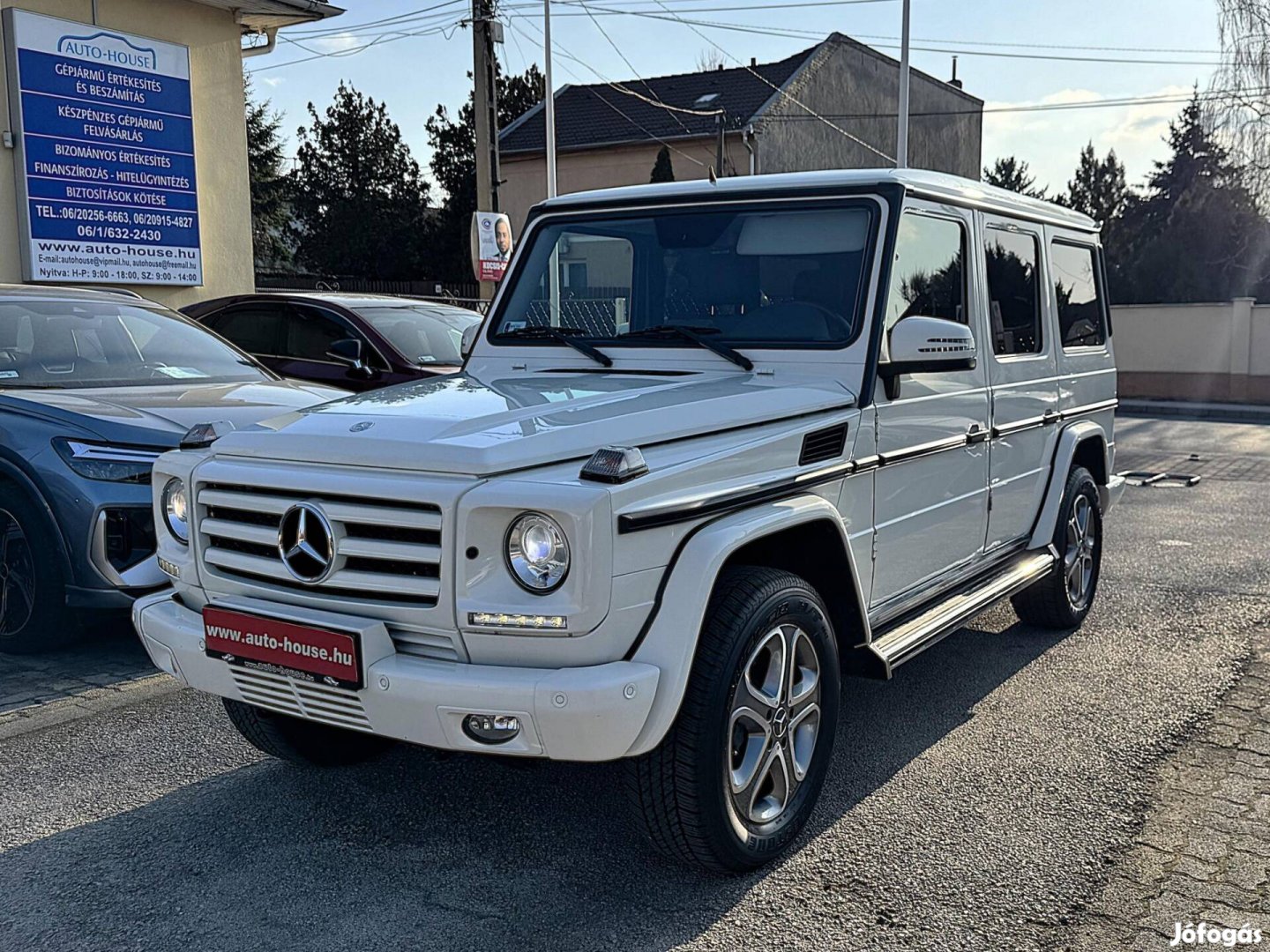 Sérülésmentes! Friss Nagyszerviz! Végig Vezetett Szerviztörténet! Megkímélt Állapot! Mercedes-Benz G 350d Bluetec Station Wagon Automata! 170.000 KM! 3.0 V6 Bluetec Turbódízel Motor! 7G-Tronic Automata Sebességváltó! Állandó Összkerékhajtás! Terepfokozat! Három Mechanikus Differenciálzár! Felszereltség: Mercedes-Benz G-Class létravázas karosszéria konstrukció --- állandó 4Matic összkerékhajtási rendszer --- terepfokozat (Low Range) --- három differenciálzár külön kapcsolással (első / középső / hátsó) --- 7G-Tronic automata sebességváltó --- 3.0 V6 Bluetec turbódízel motor optimalizált teljesítménnyel és fogyasztással --- multifunkciós bőr kormánykerék --- négyirányban állítható memóriás kormánykerék --- bőr sebességváltókar ---elektromosan állítható kormányoszlop magasság és tengelyirány állítással --- tempomat --- fedélzeti számítógép --- gyári COMAND multimédiás rendszer --- COMAND Online --- információs rendszer navigációval és rádióval --- érintővezérléses navigációs rendszer --- Bluetooth telefon és audió kapcsolat --- rádiótelefon kihangosító rendszer --- rádiótelefon előkészítés Bluetooth kapcsolattal --- USB csatlakozás --- AUX csatlakozó --- multimédia csatlakozó --- digitális rádióvétel (DAB) --- gyári Mercedes audiorendszer --- Audio 20 RDS rádió --- rádió CD / MP3 lejátszás --- 6 lemezes CD váltó --- DVD váltó --- több hangszórós hangrendszer --- légkondicionáló berendezés ACC automatikus --- mikrofilter por- és pollenszűrő --- bőr belső kárpitozás --- műszerfal betétek bőr kivitelben --- elektromosan állítható első ülések --- memóriás vezetőülés --- memóriás utasülés --- multikontúr első ülések (aktív ülések) --- állítható magasságú ülések --- ülésfűtés elöl --- ülésfűtés hátul --- állítható fejtámlák elöl és hátul --- aktív fejtámlák elöl ostorcsapás elleni védelemmel --- osztottan dönthető hátsó üléstámla --- kartámasz elöl --- kartámasz hátul --- pohártartók elöl és hátul --- palacktartók elöl és hátul --- elektromos ablakemelők elöl és hátul --- központi zár távirányítással --- kulcsos indítás indításgátlóval --- automatikusan sötétedő belső visszapillantó tükör --- elektromosan állítható és fűthető külső visszapillantó tükrök --- külső visszapillantó tükrök holttérfigyelő rendszerrel --- külső visszapillantó tükrök karosszéria színében --- külső hőmérséklet kijelző --- xenon fényszórók automatikus fényszóró magasságállítással --- Bi-Xenon fényszórók --- LED nappali menetfény --- ködlámpák --- ködfényszórók elöl --- hátsó ködlámpa --- automatikus fényszóró bekapcsolás fényérzékelővel --- fényszórómosó berendezés --- esőszenzor automatikus ablaktörlő vezérléssel --- hátsó ablaktörlő és mosó berendezés --- tolatókamera --- parkolóradar rendszer elöl és hátul --- ultrahangos parkolásirányító rendszer --- parkolást segítő vizuális és akusztikus jelzés --- gyári állófűtés rendszer (Webasto / Mercedes gyári rendszer) --- parkolófűtés programozható vagy távirányítható vezérléssel --- elektromos szervokormány sebességfüggő rásegítéssel --- szervokormánymű --- ABS blokkolásgátló fékrendszer --- fékerőszabályozó EBD / EBV ASR kipörgésgátló --- ESP menetstabilizáló rendszer --- BAS vészfékasszisztens --- lejtmenet vezérlő rendszer terepüzemhez --- keréknyomás ellenőrző rendszer --- vezető és utasoldali légzsák --- első oldallégzsákok --- függönylégzsák rendszer elöl és hátul --- biztonsági övfeszítő rendszer --- Isofix gyermekülés rögzítési pontok --- riasztóberendezés: belsőtér védelemmel és emelésérzékelővel --- masszív oldalsó fellépők --- króm csomag --- gyári könnyűfém keréktárcsák --- 16 könnyűfém felnik --- teljes méretű pótkerék hátsó ajtón --- oldalra nyíló hátsó csomagtérajtó --- nagy méretű csomagtér --- csomagtér világítás -- csomagrögzítő pontok --- színezett üvegek --- sötétített hátsó utastér üvegek -- szélvédő napvédő csíkkal --- velúr szőnyegek --- szőnyeggarnitúra --- elsősegély csomag --- elakadásjelző háromszög --- szerszámkészlet --- Összes Gyári Kulcs...