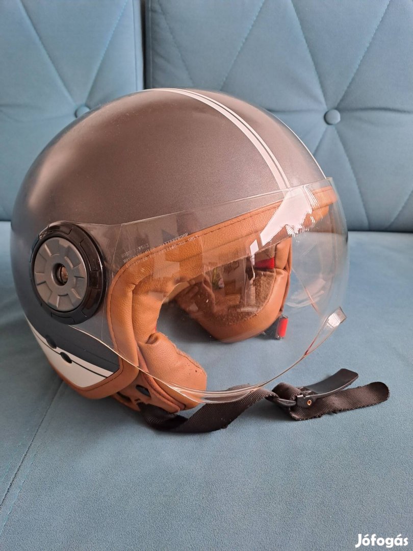 Motoros bukósisak, Demi Jet Helmo Milánó, L es, szürke színben, a felső lakkréteg pár helyen lepattogzott, alig észrevehető, egyébként szép állapotú