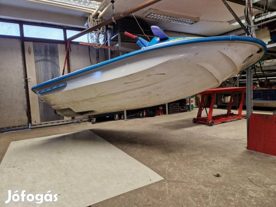 Quicksilver 380e qumicsónak levegőt jól tartja,de a hátfal belső részénél ragasztani kell. Az alján horzsolás helye van foltozva,és ahol a képen látható a végénél szivárgott de meglett foltozva. Evező és egy pad jár hozzá.