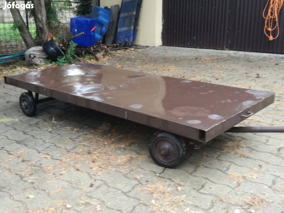 Anyaga:60x40-es zártszelvény.Kerekei 20cm átmérőjű,tömör gumik.Strapabíró nagyon masszív!