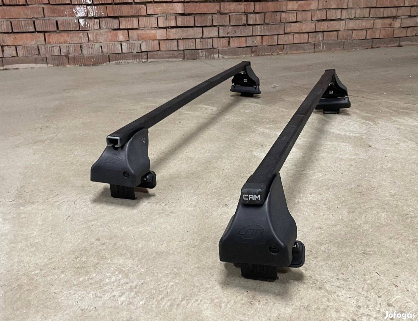 Használt CAM márkájú acél tetőcsomagtartó. Szélessége állítható, így minden normál tetejű (nem rendelkezik sínnel) autóra felszerelhető. Nekem egy Ford Fiesta-ra volt felszerelve. Az egyik műanyag végkupak hiányzik. Pesten szállításban tudok segíteni, de a legjobb, ha a vevő személyesen jön el érte.