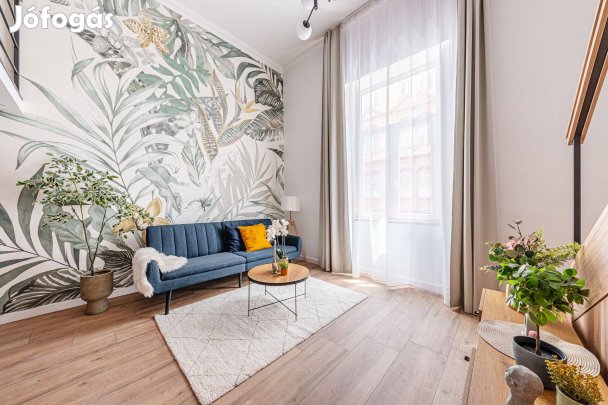 Ez az igényesen felújított lakás a liftes épület 4. emeletén helyezkedik el. A nagy alapterületnek és belmagasságnak köszönhetően tágasabb a térérzet. A szín és anyag használat kifinomultsága tükrözi a tervező által megálmodott szabadság hangulatát. A komfortosságát növeli, hogy 2 fürdőszoba található. Ez a szép otthon klímával felszerelt, cirkó fűtéssel rendelkezik.