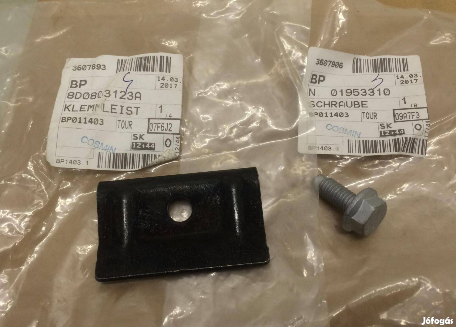 VW gyári cikkszámok: 8D0803123A rögzítővas, N01953310 csavar