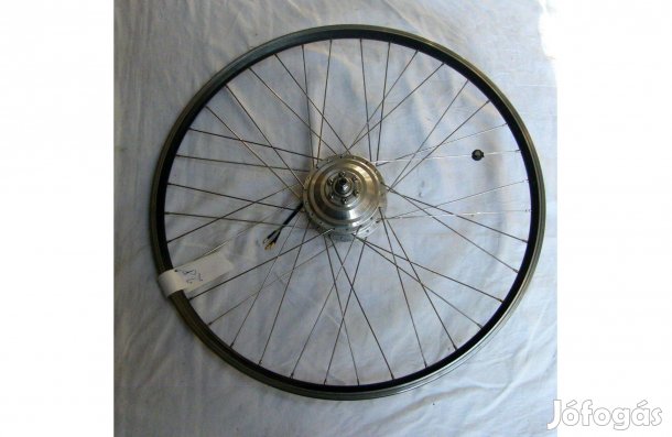 28 colos felni. 24-36-48 voltos egy fázisú / kefés/ 250 wattos motoros első villába építhető be vizsgált kerék eladó.
