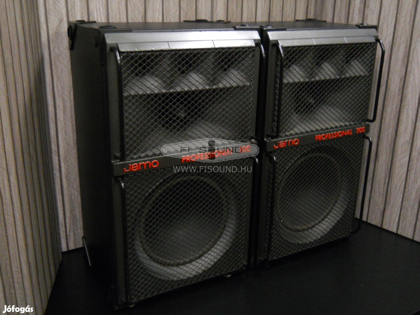 Eladó a képeken látható esztétikai állapotú,csak ami a képeken szereplő , műszakilag kifogástalan, Jamo Professional 300A ,420W,8ohm,2 utas hangfal pár 30cm-s mélyekkel , helyben kipróbálhatóan !