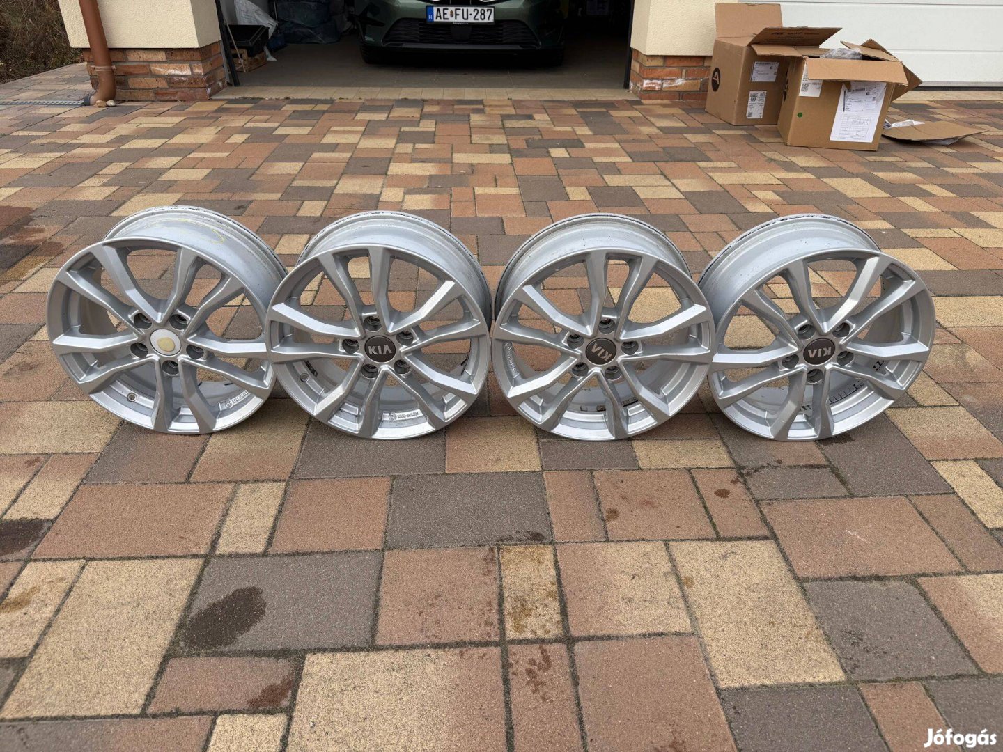 Eladó 4 db gyári KIA könnyűfém felni. 16*6,5", osztókör: 5*114,3 mm, középfurat 67,1 mm, ET50. 3 db. jó állapotú pár apró használati karc van rajta, a negyedik sérült (kátyú), javításra szorul! Hegeszteni, görgőzni kell, a levegőt tartotta.