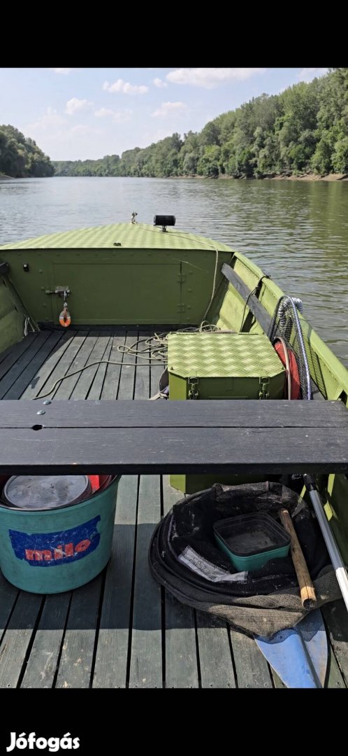 Eladó a képen látható 6 m es váci katonai rocsó. Kivül alu festékkel festve,a lábdeszka 16 mm es akácfábol,fartükör 4cm es akácfa. Vezetékelve,automata szivattyu,poziciofény. Elöl ledes reflektor. Az orrboritás zárható,alu ajtoval,teteje alu 3.5 mm trepnilemez.