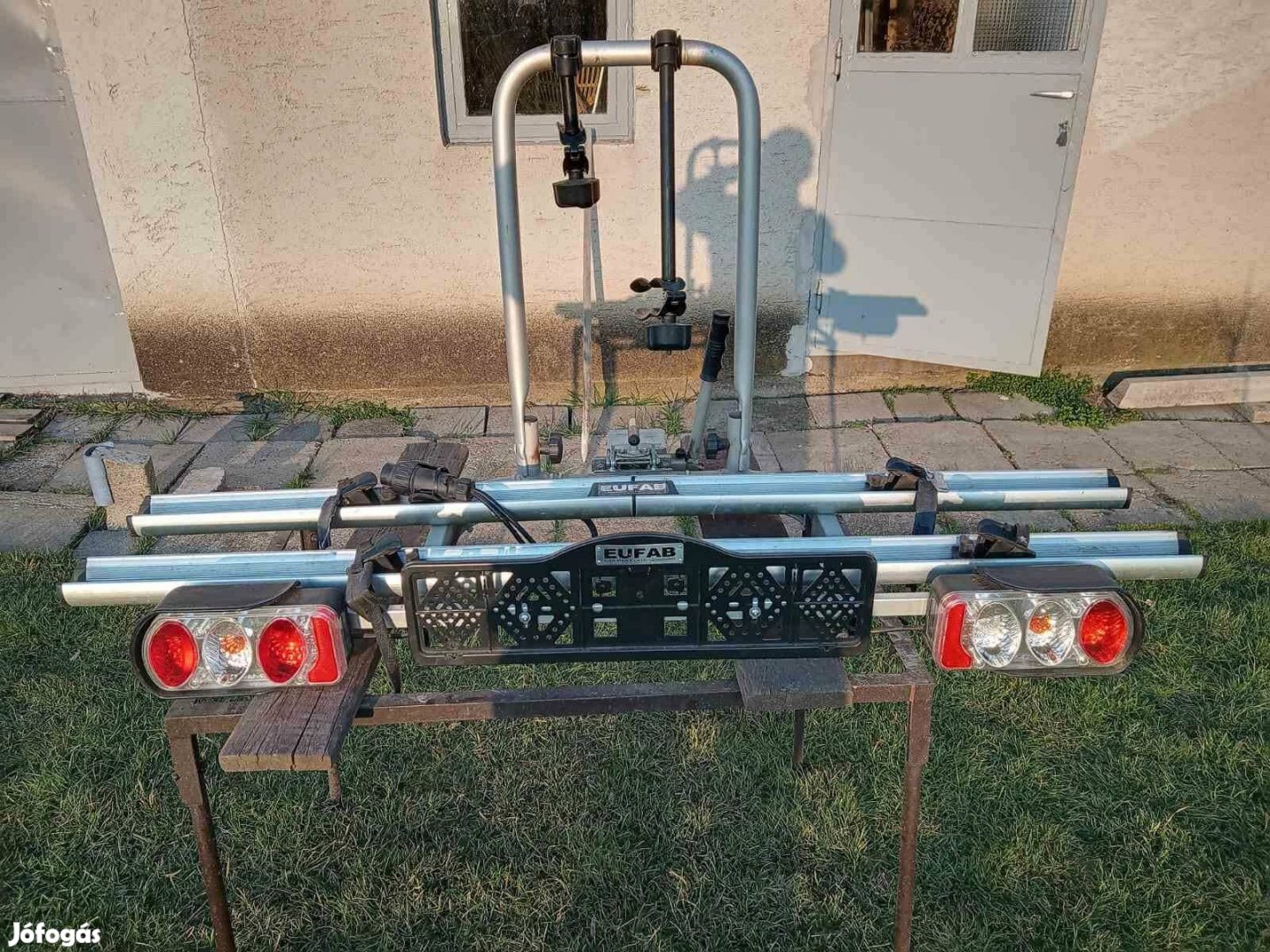 Jó állapotban levő vonóhorogra csatlakoztatható kétállásos kerékpárszállító eladó. Bővebb információ telefonon.