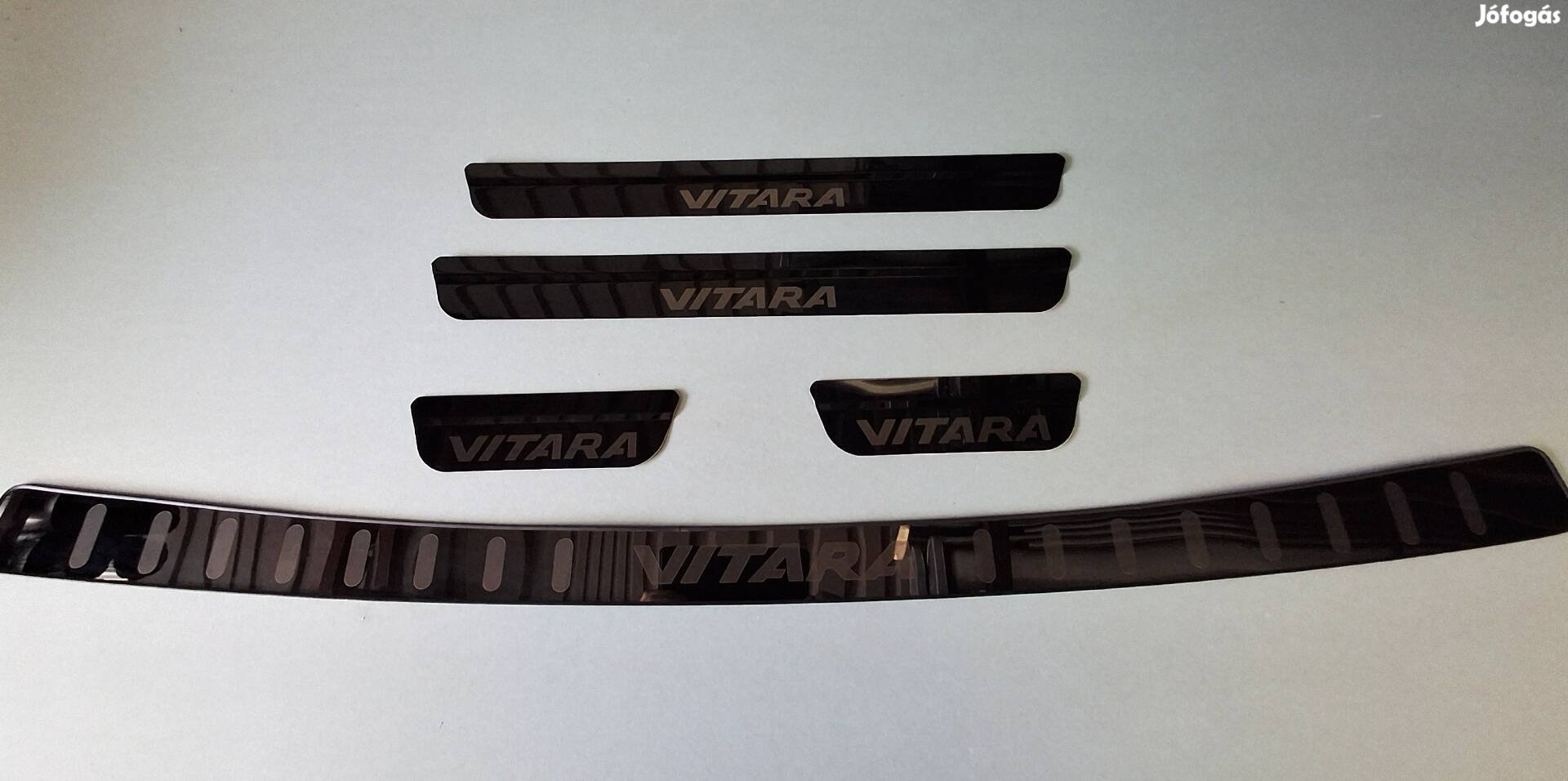 Eladó a képen látható 5db-os fekete rozsdamentes acélból készült Vitara küszöbvédő szett csomagtérélvédővel