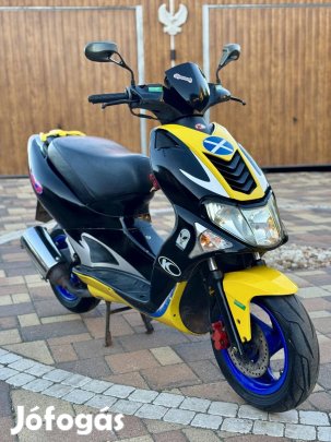szept 24., 17:42Eladó a képeken látható megkímélt állapotban lévő Kymco Super9 típusú 50ccm 2 ütemű robogó. Minden tökéletesen működik rajta bármikor elsőre indul önindítóval és berúgóval egyaránt, erős csendes dinamikus és nagyon megbízható motorral, új garanciális akkumulátorral, új tükrökkel, új gumival, erős fékekkel e-h tárcsa, vízhűtéses, különolajzós, karburátoros, ülés alatt nagy csomagtartóval, gyári kulcsával költségmentes állapotban eladó. Szállítás megoldható.