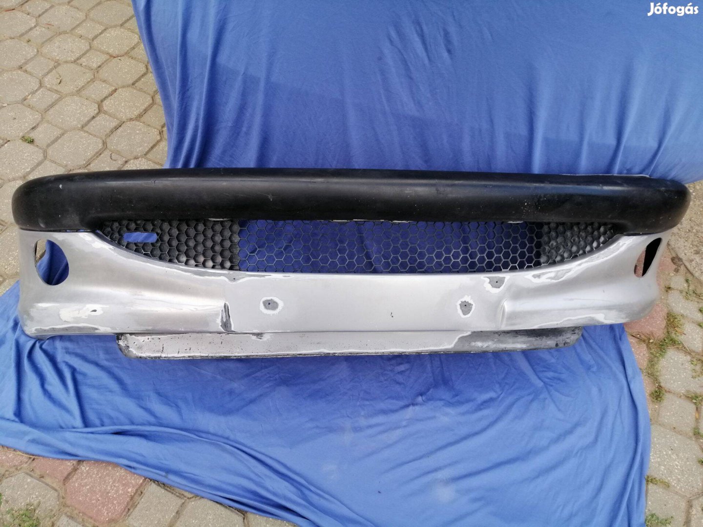 Eladó Peugeot 206 első lökharító, szürke színű (színkód ismeretlen), képeken látható állapotban. Hibás, feltehetően javított festés.
