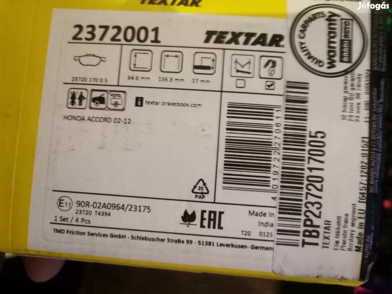 Textar 2372-2001 Első fékbetét szett