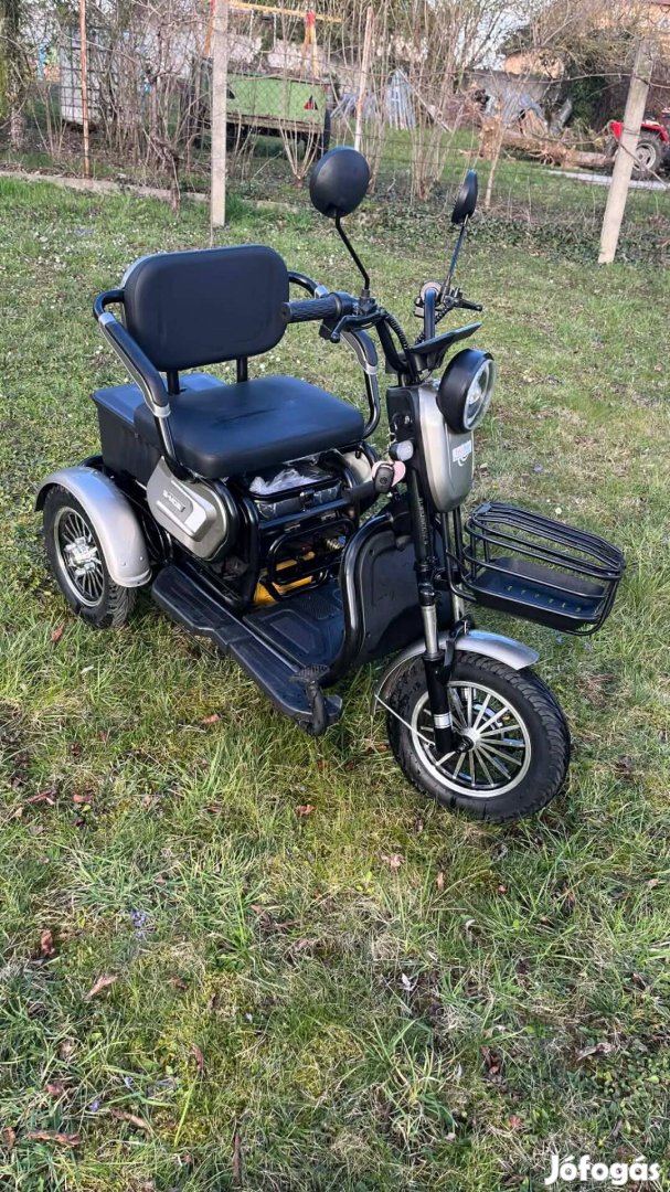 Eladó 2025.12.18-án vásárolt háromkerekű elektromos tricikli,kihasználatlanság miatt.Új,csak kipróbált állapotban, papírjaival.Új ára 409000 ft volt.Irányár 350000Ft.