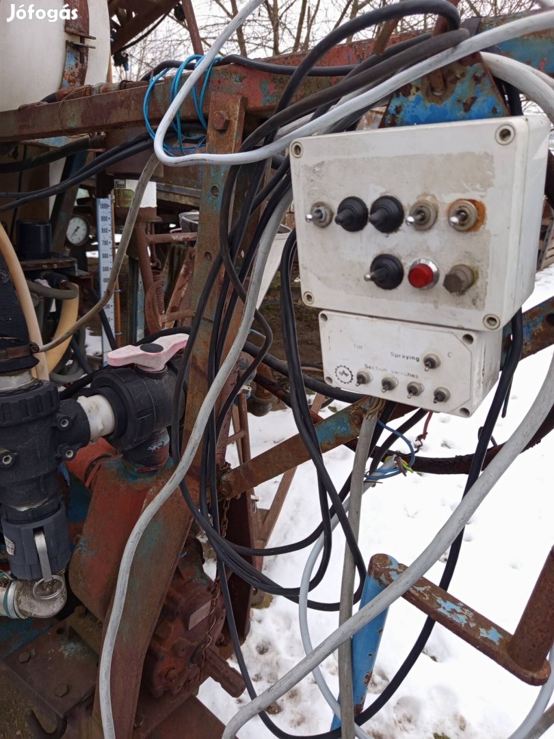 Eladóvá vált egy 2500 literes 24 méter széles elektromos vezérlésű hidraulikus keretemelésü,és nyitasú szántóföldi vontatott permetező.