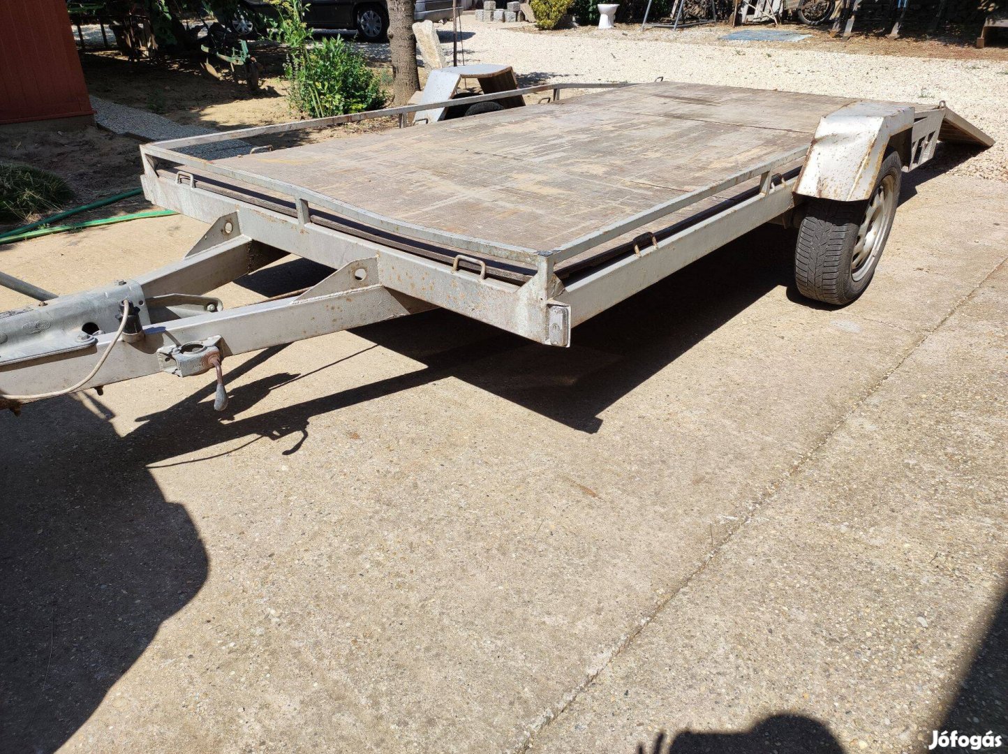 Eladó a képen látható ráfutó fékes utánfutó 2027.06 műszakival 350x170cm platóval,rámpával.