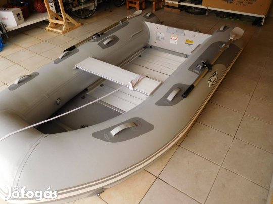 Az Allroundmarin márka csúcsterméke nagyság, anyag használat, felszereltség tekintetében. Hibátlan, folt és szivárgásmentes. Teherbírása 750 kg. 6 felnőtt és egy gyermek szállítására alkalmas. 25 lóerővel motorizálható, mérete: 380x180 cm. Gyártási idő: 2005, 1,2 mm-es erősített pvc anyagból készült és alumínium padlós. Tömege: 65 kg. Megnézhető telefonos egyeztetés után Debrecenben.