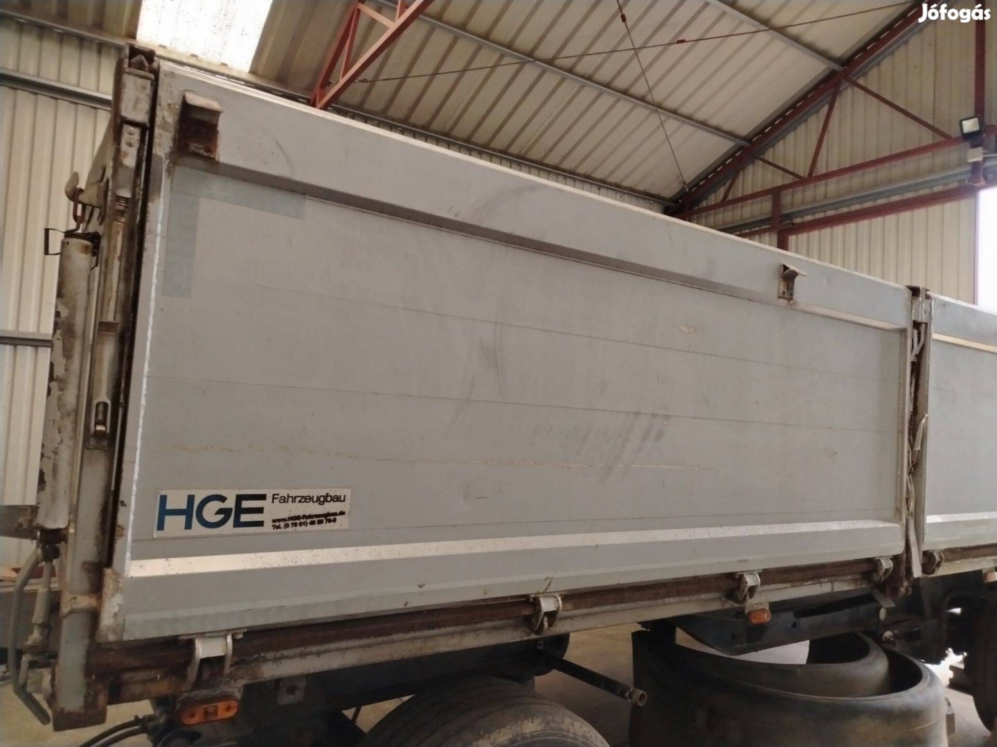 Hge 3oldalra billenős 14-15 t-ás.5.8m hosszú. 1.1m magas plató. Tél: