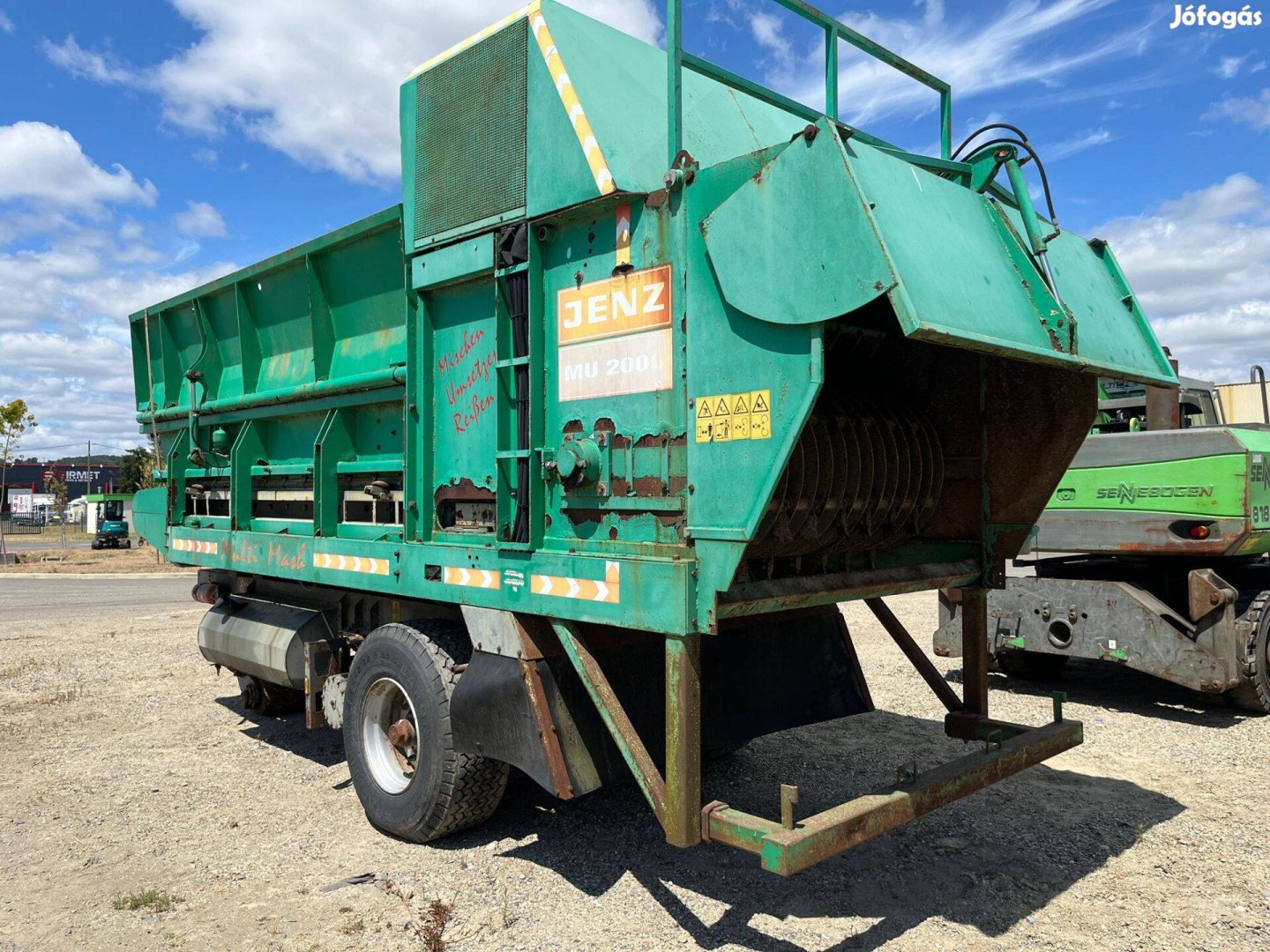 Jenz MU2000 erdészeti daráló, 2002-es évjárat, 775 üzemóra, 10 tonna önsúly, 4 hengeres 75 kW-os Perkins motor, 350m3/óra kapacitás, azonnal munkára fogható állapotban. Az árat a napi euró/forint árfolyam szerint számoljuk! Uniós Adószámmal rendelkezőknek 0% Áfa . Teljes kinálatunkért látogassa meg a weboldalunkat