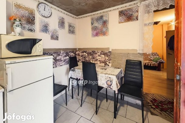 Az ingatlan elrendezése: előszoba, három szoba, fürdőszoba, WC, étkező, kamra és külön bejáratú konyha. A bútorok többsége igény szerint maradhat.