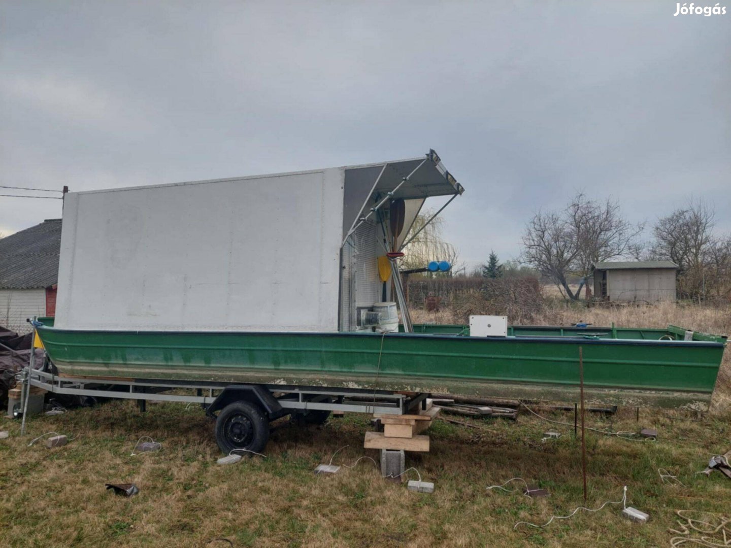 7 méter hosszú,175 cm széles,150 cm fenékszélesség,175 felépítmény magasság (belmagasság 192 cm),2021. évben épített, Áramforrás napelemmel, hozzá tartozó akkumulátorral, Automata elektromos vízszivattyú, Fűtés, külső belső led fények. reluxa, asztal, ágy, szúróvasak, tűzoltókészülék, tárolók, tv. leszúrók.
