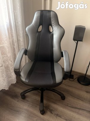 A képen látható fekete, párnázott, gurulós szék ajándékba