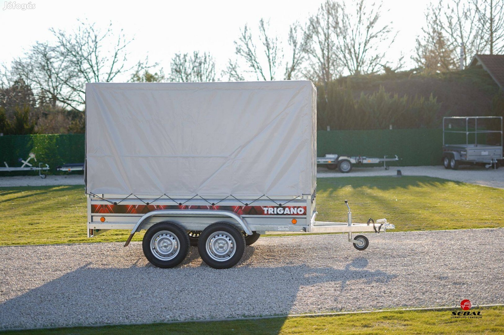 Új Trigano 2P265 (265 x 150 cm) utánfutó - 4 év műszakival, forgalomba helyezve, rendszámmal + 145 cm (oldalfal + 110 cm ponyva váz) rakodó magasságú ponyvával: bruttó 970.900 Ft helyett bruttó 887.000 Ft